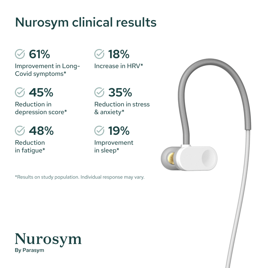Nurosym is backed by peer-reviewed scientific studies demonstrating its efficacy in improving heart rate variability, reducing inflammation, and managing chronic pain. For example, scientific studies have shown that just five minutes of Nurosym use improved vagal tone and lowered inflammatory markers like IL-6 by 78% among heart problems users.