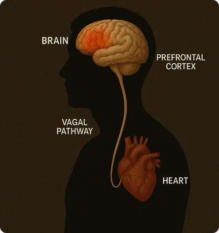 - Heart Pacemaker Modulation: Vagal signals reach your sinoatrial node (heart’s pacemaker), increasing parasympathetic influence and creating greater beat-to-beat variability