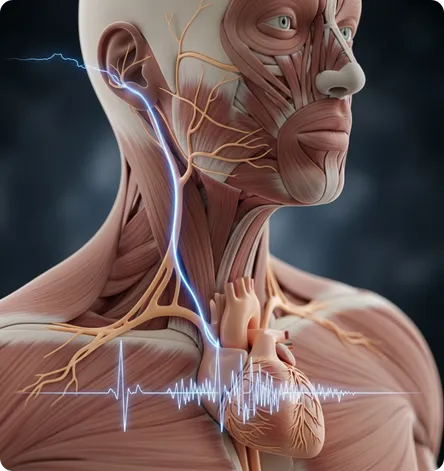 Nurosym delivers direct vagal nerve stimulation through precise electrical signals, activating the primary neural pathway that regulates heart rate variability.