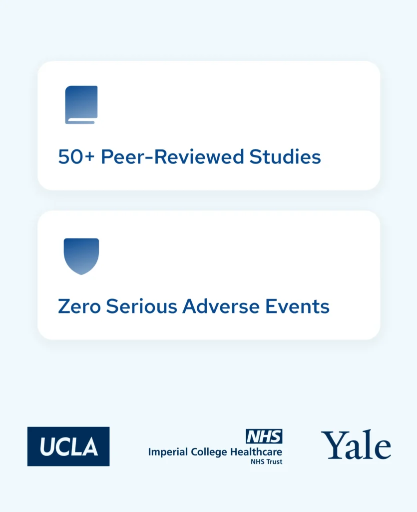Zero serious adverse events reported across scientific studies to date, with regulatory approval as a medical device.