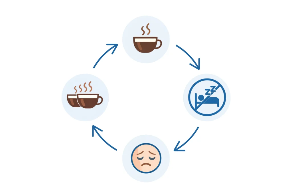 The cycle: More caffeine → worse sleep → more exhaustion → even more caffeine.