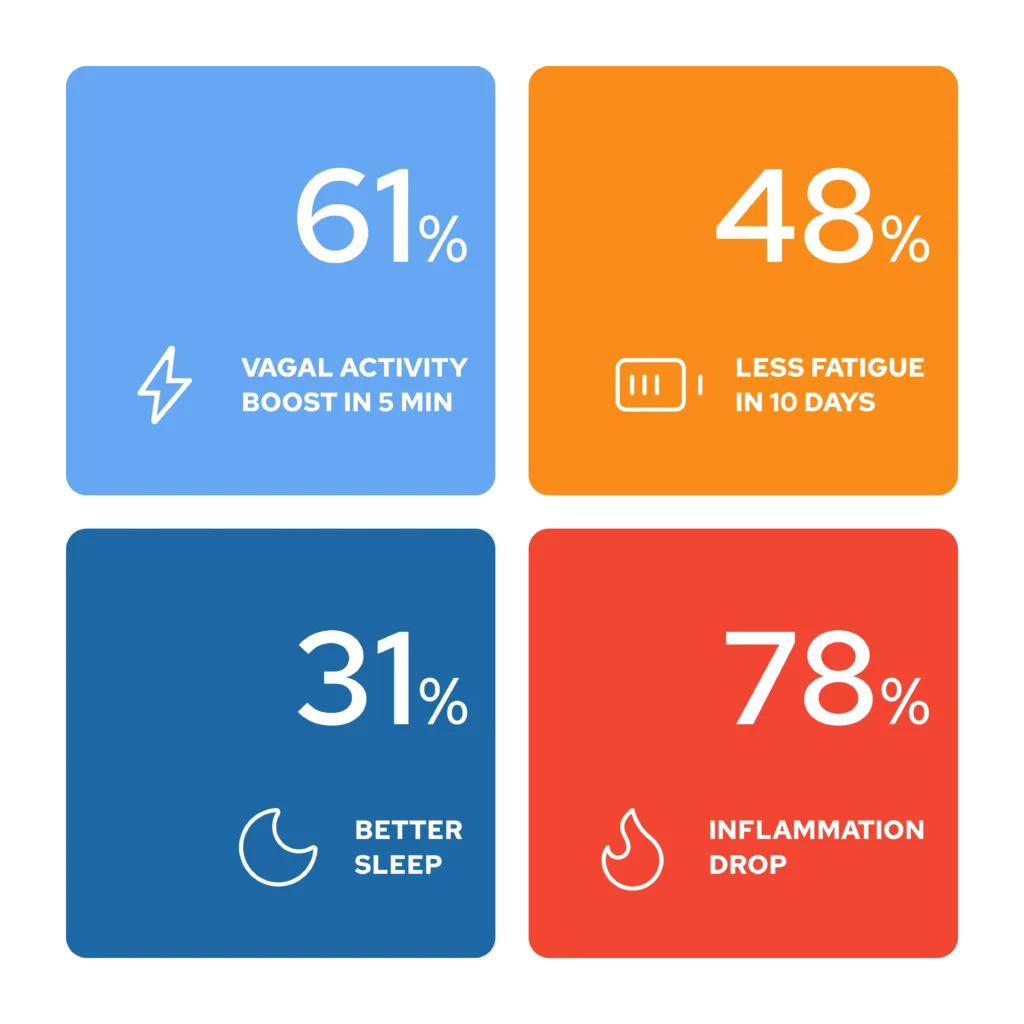 - Studies show 48% reduction in fatigue levels and 31% improvement in sleep quality with consistent VNS use