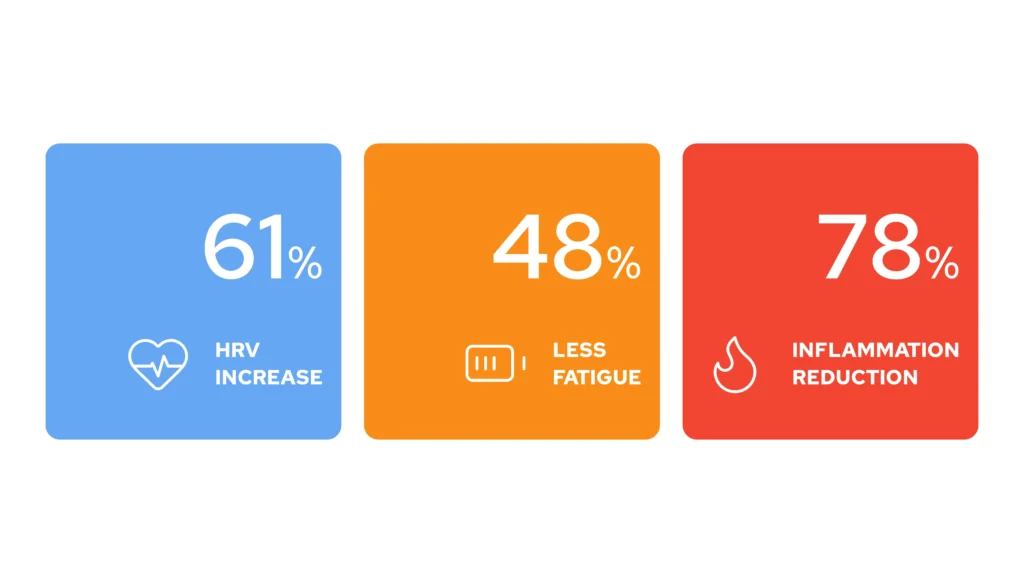 - Research from institutions like Yale, Stanford, UCLA, and Imperial College London, University College London shows VNS increases heart rate variability (HRV) by up to 61%, a key marker of nervous system health