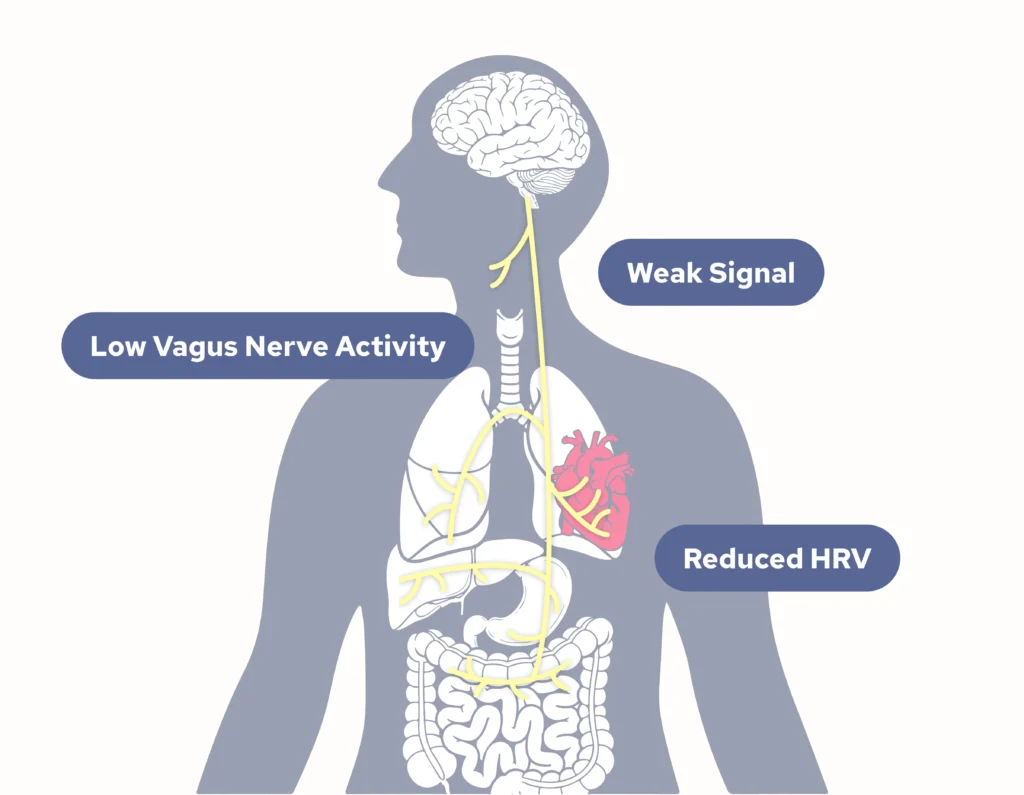 When your vagus nerve demonstrates reduced activity (low vagal tone), multiple physiological consequences reduce HRV: