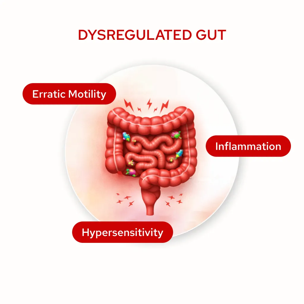 When that regulation becomes less stable, even an ordinary meal may be enough to provoke a disproportionate digestive response, leading to symptoms such as bloating, cramping, urgency, or pain.